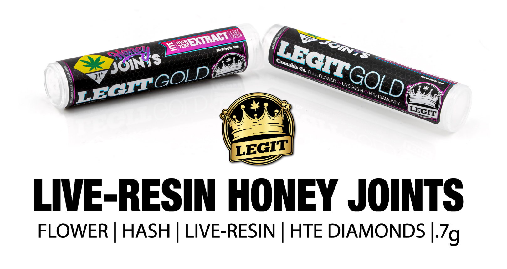 For those seeking a true PUNCH on a different scale, we offer Legit GOLD Honey Joints. These have hash, a smooth live-resin infusion with a HTE Diamond backing and come in a smaller offering but there’s nothing MINI about the high. The Legit GOLD Honey Joints are the LEGIT solution for those wanting a quick, reliable, strong smoke. Trying to maximize a break? Trying to stretch your $$$? Smoking by yourself? Live-Resin HTE Joints are the answer. FINALLY a premium product at an affordable price. Smoke a Honey Joint today and experience the difference when things are done by intention.