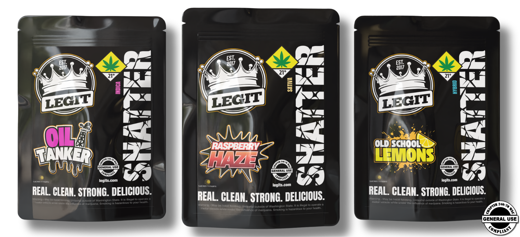 Are you in search of consistent, clean, quality concentrates? Look no further: Legit SHATTER is now available. Crafted with the same uncompromising standards behind every Legit product, each batch is refined for a consistent, smooth, and powerful experience. Our crispy Legit SHATTER is available in THREE (3) distinct Legit Strains; Oil Tanker(indica), Raspberry Haze(sativa), and Old School Lemons(hybrid).